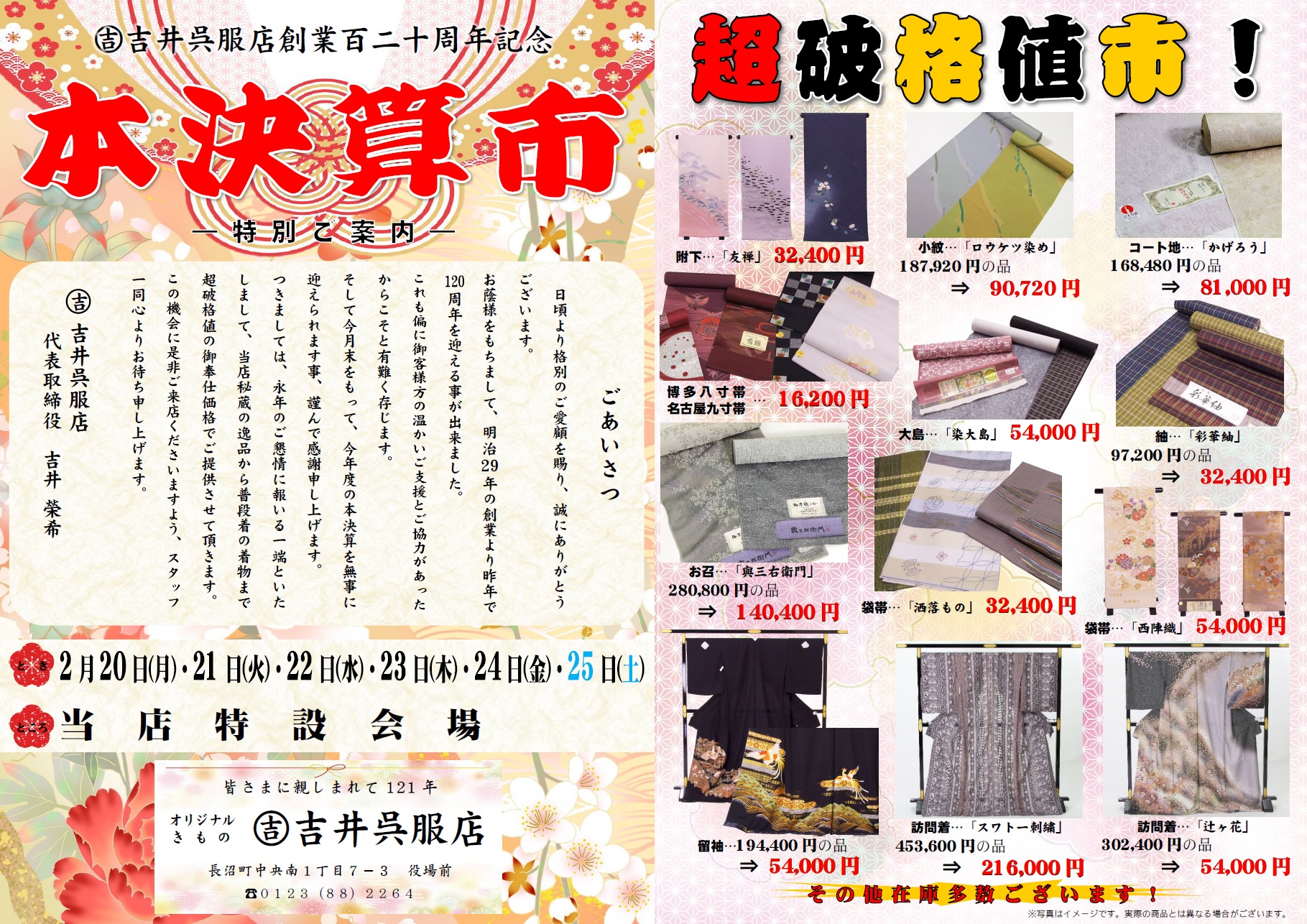 • 創業百二十周年記念「本決算市」の御案内  日時2月20日(月)~25日(土)